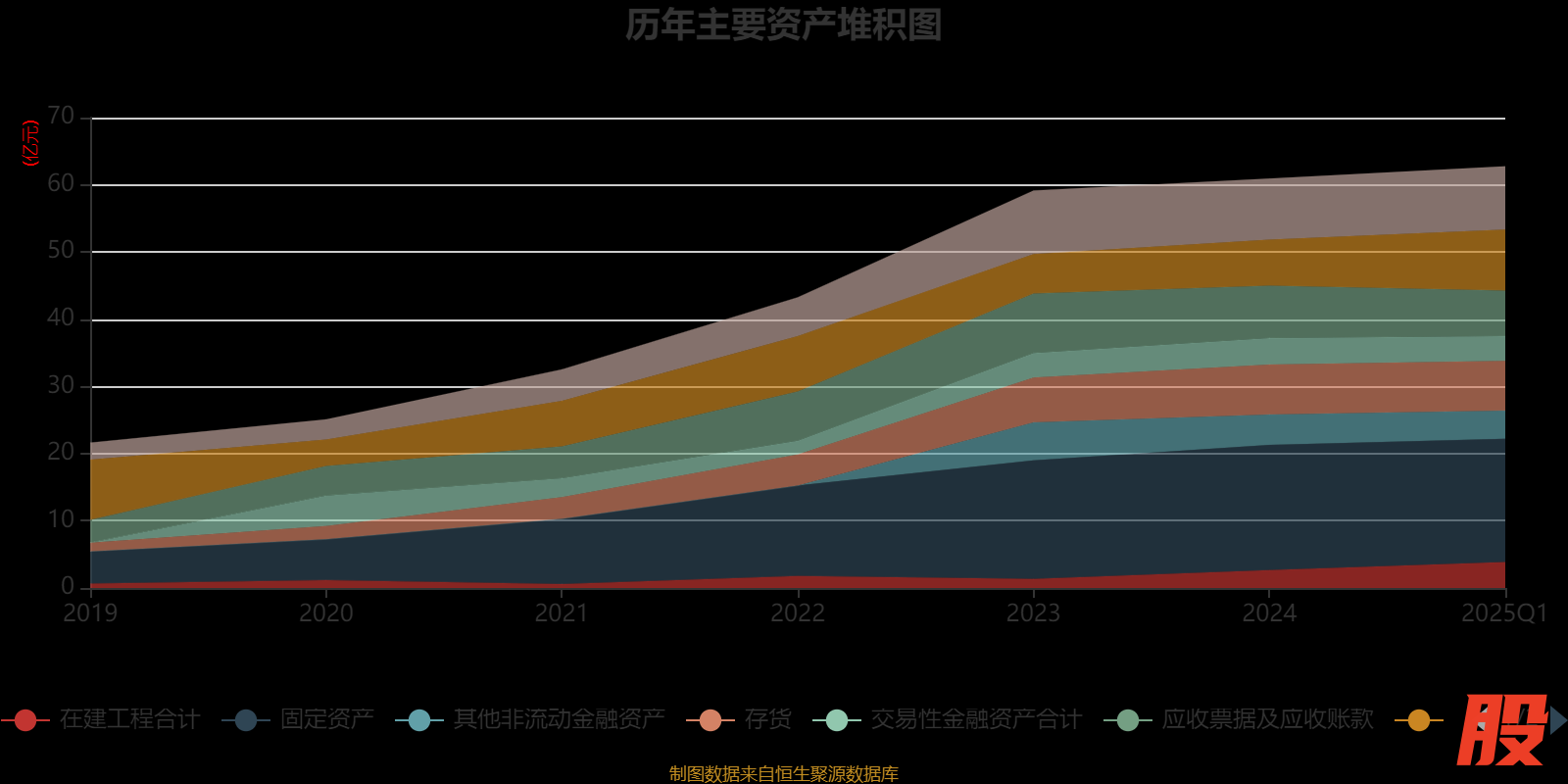 资产重大变化方面,截至2025年一季度末,公司货币资金较上年末增加32.17%,占公司总资产比重上升3.18个百分点;应收票据及应收账款较上年末减少12.93%,占公司总资产比重下降1.99个百分点;在建工程合计较上年末增加44.9%,占公司总资产比重上升1.77个百分点;固定资产较上年末减少1.6%,占公司总资产比重下降1.37个百分点。
