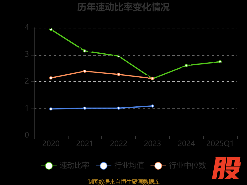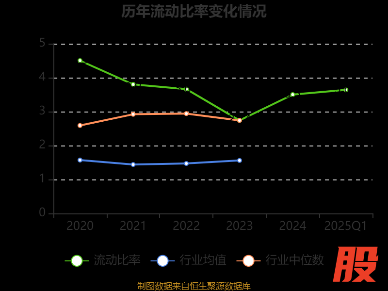 2025年第一季度,公司流动比率为3.64,速动比率为2.74。