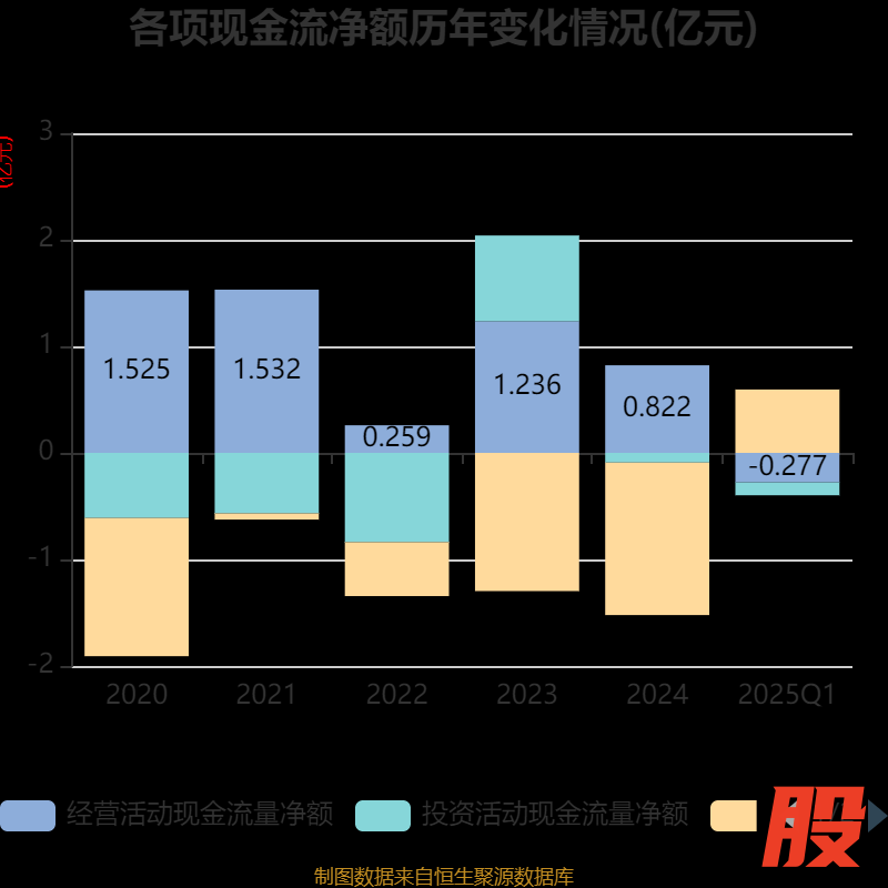 截至2025年一季度末金富宝,公司经营活动现金流净额为-2765.44万元,同比增加2632.49万元;筹资活动现金流净额5948.59万元,同比增加7146.79万元;投资活动现金流净额-1214.66万元,上年同期为-871.91万元。